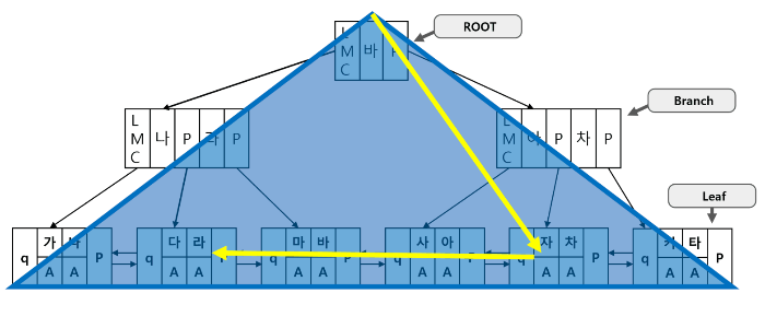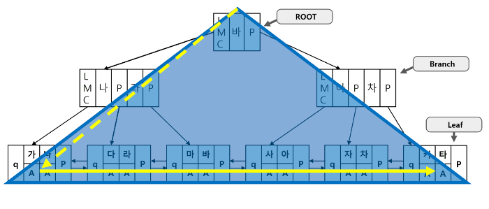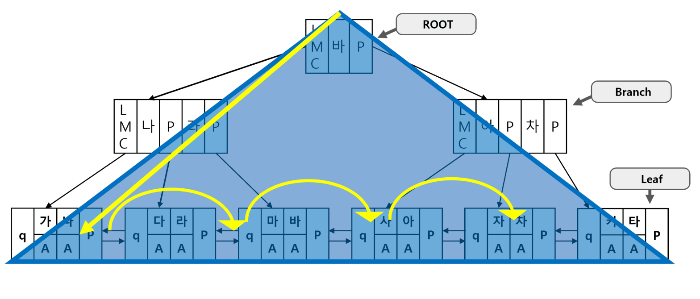 중요 요점) 인덱스 탐색 과정이 수직적 탐색과 수평적 탐색, 두 단계로 이루어진 사실.